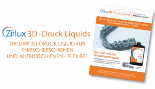 Zirlux® 3D Liquid Nightguard & Splint Resin- Flexible ist ein zertifiziertes Druckerharz, das sich für die Herstellung von Nachtschienen, Schienen, Mundschutz, Repositionierern und Bleachingschienen eignet. Dieses DLP-optimierte Harz ist ein außergewöhnliches Druckmaterial, das die nötige Festigkeit zum Schutz der Zähne vor Erkrankungen wie Bruxismus mit zusätzlicher Flexibilität für mehr Patientenkomfort kombiniert.
